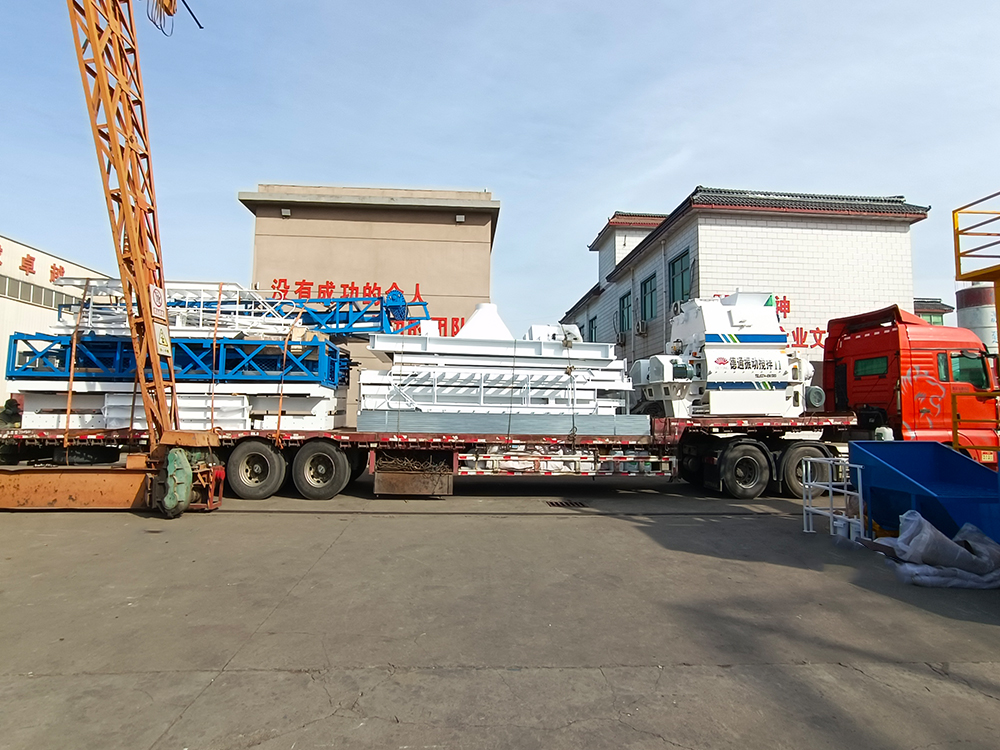 上個(gè)月公司在蘭太高速簽訂的兩套雙120型攪拌站,采用了兩臺(tái)振動(dòng)式攪拌機(jī),已于前日送到公司,今日已和我們廠家自己生產(chǎn)的震動(dòng)平臺(tái),主站框架、PLD3200配料機(jī),皮帶輸送機(jī)以及稱(chēng)量系統(tǒng)一起裝車(chē)發(fā)往工地。hzs120型混凝土攪拌站每小時(shí)理論上可以生產(chǎn)120方混凝土,整站循環(huán)周期是60秒,平均每次可以出2方···